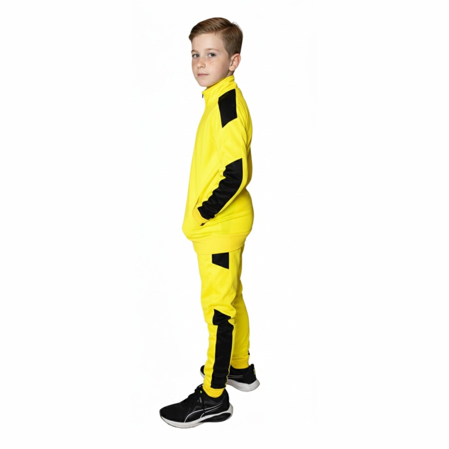 Keep your child comfortable and active with this stylish kids’ tracksuit. Designed for everyday wear, it includes a full-zip jacket and matching joggers that offer both function and style. The soft, lightweight fabric allows easy movement, while ribbed cuffs and hem ensure a secure fit. With side pockets for added convenience and an elastic waistband for flexibility, this tracksuit is perfect for sports, school, or casual outings. Durable and versatile, it’s an essential addition to any kid’s wardrobe.
